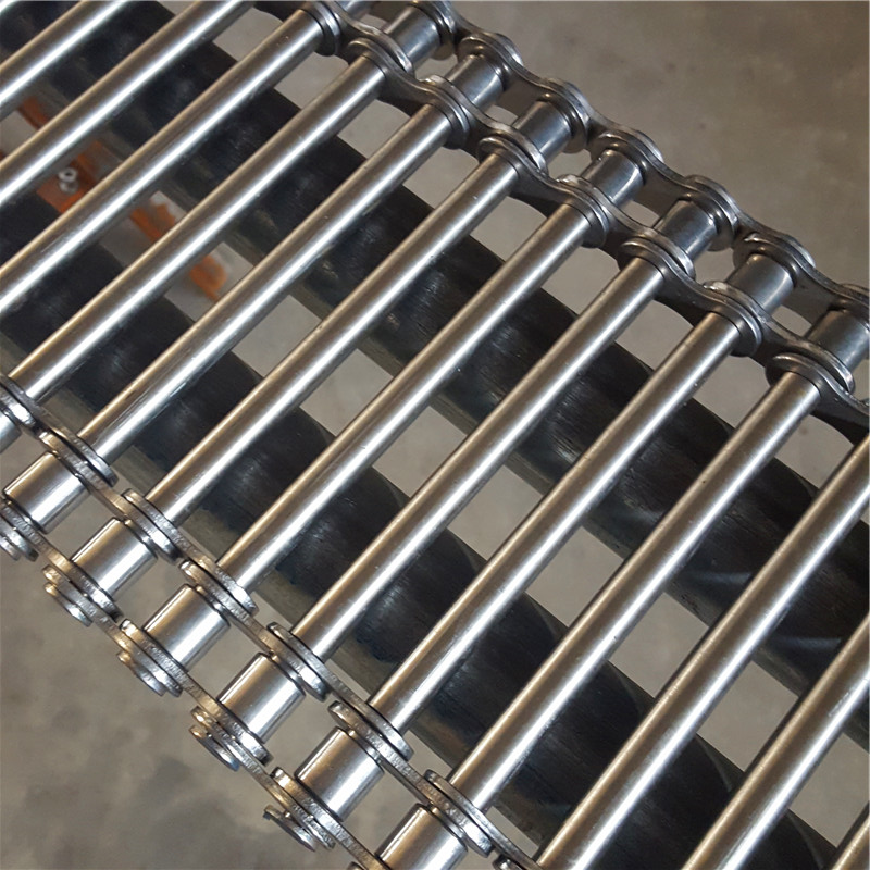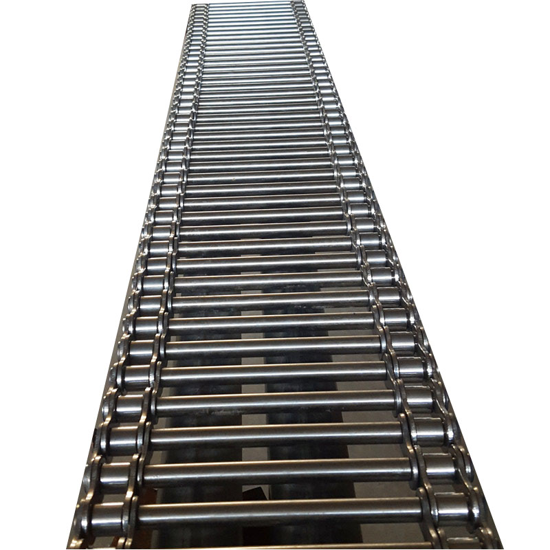 這是一種利用鏈條和支軸做成的傳送輸送帶。先把支軸穿軸的兩頭車細(xì),然后兩邊鑲上鏈條,最后用墊圈把支軸焊上或用開(kāi)口銷銷上,這就是鏈桿式輸送帶。鏈條的節(jié)距和材質(zhì)和滾子的大小各種都有,支軸的粗細(xì)和材質(zhì)和直徑和長(zhǎng)度有多種型號(hào)供選擇。