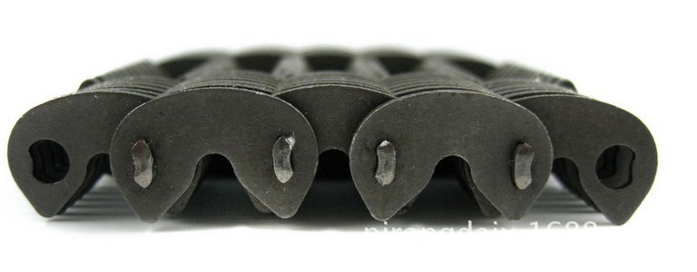 HV416-96l哈瓦鏈條:一種雙軸的齒形鏈條,軸是兩根用,在一個鏈條孔里面有兩個瓦片銷軸。下圖是HV416齒形鏈條。有5個導(dǎo)向片,60個帶尖的齒形鏈片,長度106.5毫米,2500元一條。