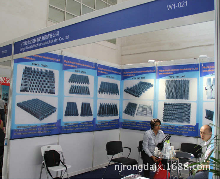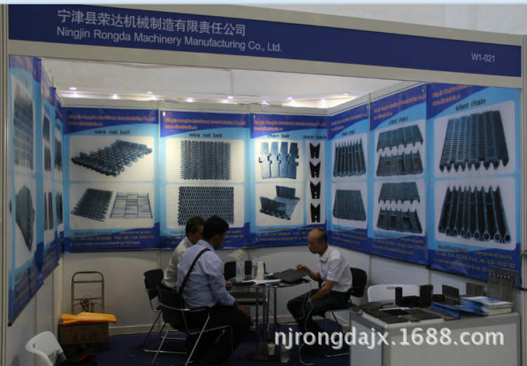 2015年05月20-23日寧津縣榮達機械制造有限責任公司再次參加北京的中國國際玻璃技術展覽會,我們跟國外的許多直接用戶促膝交流,我們問他們使用我們的無聲齒型鏈條,無聲齒形鏈帶怎么用?他們說還行,挺好。我們非常高興。最近幾年我們不斷的國外業(yè)務發(fā)展使得我們的對于無聲齒形鏈條鏈帶的要求越來越嚴格。我們在不斷的追求更好。以適應國際市場的需求。