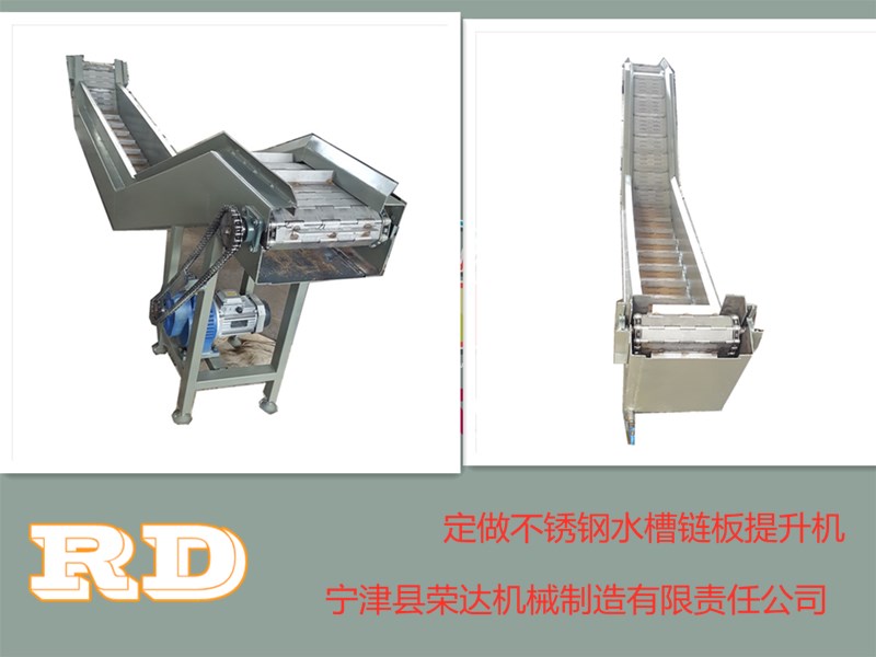給客戶定做的不銹鋼材質(zhì)鏈板輸送機(jī),長度4.3米 寬度50公分 高度一頭高1.1米 一頭高50公分,工期5天。