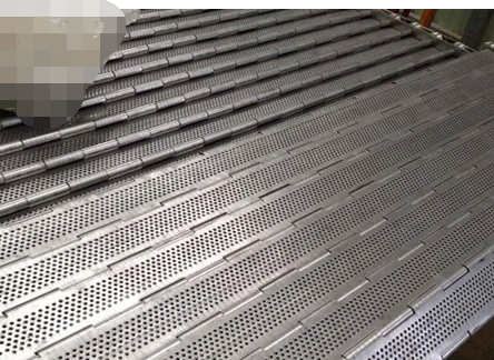 鏈板輸送帶非常堅(jiān)固,由不銹鋼鏈條驅(qū)動(dòng),采用不銹鋼板材生產(chǎn),適合用于輸送細(xì)小的高密度物件,輸送過程中運(yùn)轉(zhuǎn)平穩(wěn),安裝更換方便,使用壽命較長(zhǎng)。用于中等和大負(fù)荷輸送。鋼板彎曲形成合葉,使用支軸將合葉和鏈條串在一起。兩端的鏈條可以使用開口銷或者墊圈來固定,使用開口銷方便拆卸,維護(hù)方便。鏈板大概分:1,按照材質(zhì)分:碳鋼鏈板輸送帶,鍍鋅鏈板輸送帶,不銹鋼201鏈板輸送帶,不銹鋼304鏈板輸送帶,其他不銹鋼鏈板輸送帶。2,根據(jù)外形來分:平鏈板輸送帶,帶橫擋板鏈板輸送帶,帶擋邊鏈板輸送帶,沖孔鏈板輸送帶(圓孔,長(zhǎng)條孔),帶凸起鏈板輸送帶。3,根據(jù)輸送形式分:直輸鏈板輸送帶,拐彎的鏈板輸送帶。4,合頁鏈板輸送帶,排屑鏈板輸送帶,槽鋼鏈板輸送帶。5,雙節(jié)距鏈條鏈板帶,精密滾子鏈條鏈板輸送帶。