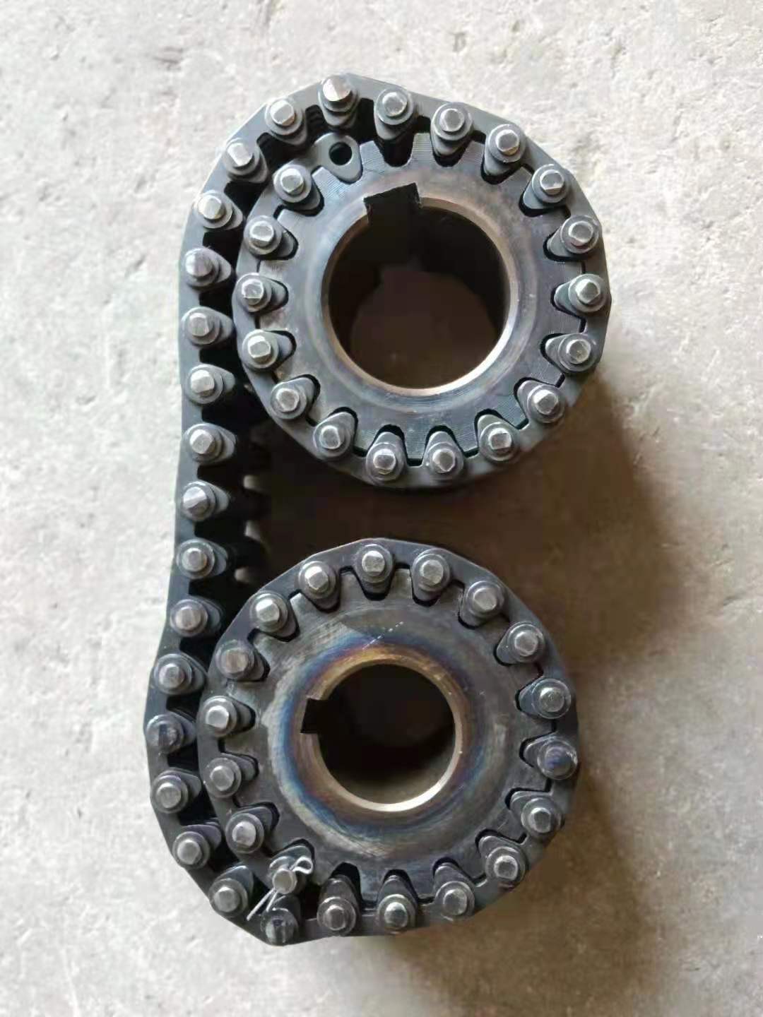 無聲鏈 齒形鏈輪 無聲鏈:也叫齒形鏈條,采用無聲齒形鏈輪帶動運轉(zhuǎn)傳動。寧津縣榮達機械制造有限責任公司定做各種無聲齒形鏈條,無聲齒形鏈輪。我們根據(jù)客戶自己的情況,客戶選型成功,我們根據(jù)客戶的數(shù)據(jù)非標定做各種齒形鏈條和無聲齒形鏈輪。齒形鏈條節(jié)距4.7625,6.35 9.525 12.7 15.875 19.05 25.4 31.75 38.1毫米的鏈條都能做,無聲齒形鏈輪根據(jù)客戶的齒數(shù)和外徑,內(nèi)孔,鍵槽定做。無聲齒形鏈條的獨特優(yōu)點:高速,無噪音,高承載傳動能力,轉(zhuǎn)矩大等等優(yōu)點,逐漸取代精密滾子鏈條和同步帶。