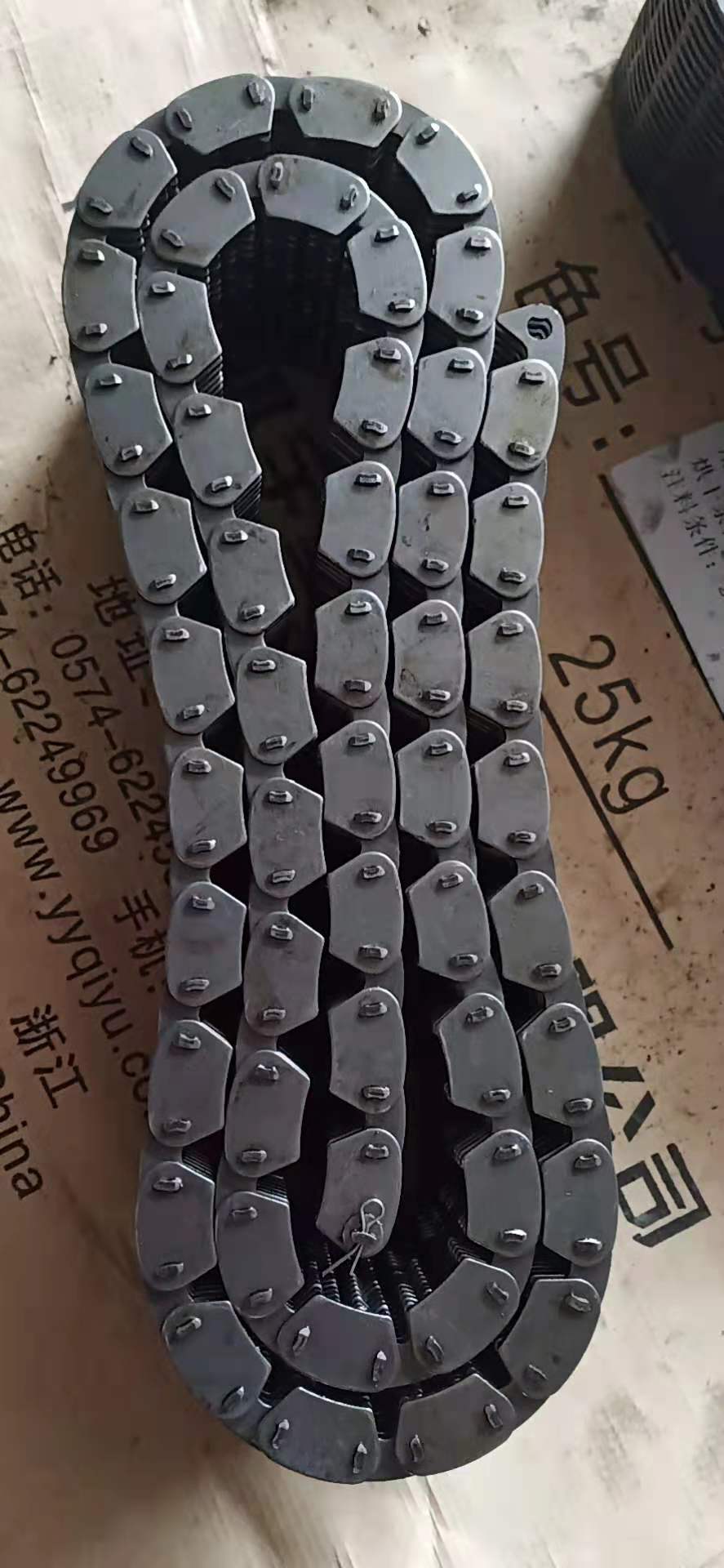 齒形鏈又稱無(wú)聲鏈(Silent Chain),屬于傳動(dòng)鏈的一種形式。我國(guó)的國(guó)家標(biāo)準(zhǔn)為:GB/T10855-2003《齒形鏈和鏈輪》。齒形鏈?zhǔn)怯梢幌盗械凝X鏈板和導(dǎo)板交替裝配且銷軸或組合的鉸接元件連接組成,相鄰節(jié)距間為鉸連節(jié)。根據(jù)導(dǎo)向型式可分為:外導(dǎo)式齒形鏈、內(nèi)導(dǎo)式齒形鏈和雙內(nèi)導(dǎo)齒形鏈.齒形鏈又稱無(wú)聲鏈,屬于傳動(dòng)鏈的一種形式。齒形鏈?zhǔn)且环N應(yīng)用廣泛的重要機(jī)械基礎(chǔ)件,主要用在高速、重載、低噪音、大中心距的工況下,其傳動(dòng)性能優(yōu)于齒形帶傳動(dòng)、齒輪傳動(dòng)以及磙子鏈傳動(dòng),以成為眾多行業(yè)首選對(duì)傳動(dòng)形式之一,以嚙合形式分可分為內(nèi)嚙合齒形鏈、外嚙合齒形鏈和內(nèi)外復(fù)合嚙合齒形鏈,其中內(nèi)外復(fù)合嚙合齒形鏈的噪音最小,應(yīng)用也最廣泛。主要特點(diǎn):1.噪音小 齒形鏈?zhǔn)峭ㄟ^工作鏈板與鏈輪齒的漸開線齒形進(jìn)行嚙合傳遞動(dòng)力,與滾子鏈和套筒鏈相比其多邊形效應(yīng)明顯降低,沖擊小、運(yùn)動(dòng)平穩(wěn)、嚙合噪音較小。2.可靠性較高 齒形鏈的鏈節(jié)是多片式結(jié)構(gòu),當(dāng)其中個(gè)別鏈片在工作中遭到破壞時(shí)并不影響整根鏈條的工作,使人們能夠及時(shí)發(fā)現(xiàn)并更換,如需增加承載能力只需在寬度方向較小尺寸(增加鏈片排數(shù))。3.運(yùn)動(dòng)精度高 齒形鏈各鏈節(jié)磨損伸長(zhǎng)均勻,可保持較高的運(yùn)動(dòng)精度。齒形鏈條主要應(yīng)用范圍:齒形鏈主要應(yīng)用在紡織機(jī)械和無(wú)心磨床,傳送帶機(jī)械設(shè)備。齒形鏈條的種類:CL06,CL08,CL10,CL12,CL16,CL20。根據(jù)導(dǎo)向分:內(nèi)導(dǎo)的齒形鏈條和外導(dǎo)的齒形鏈條,內(nèi)外復(fù)合的齒形鏈條